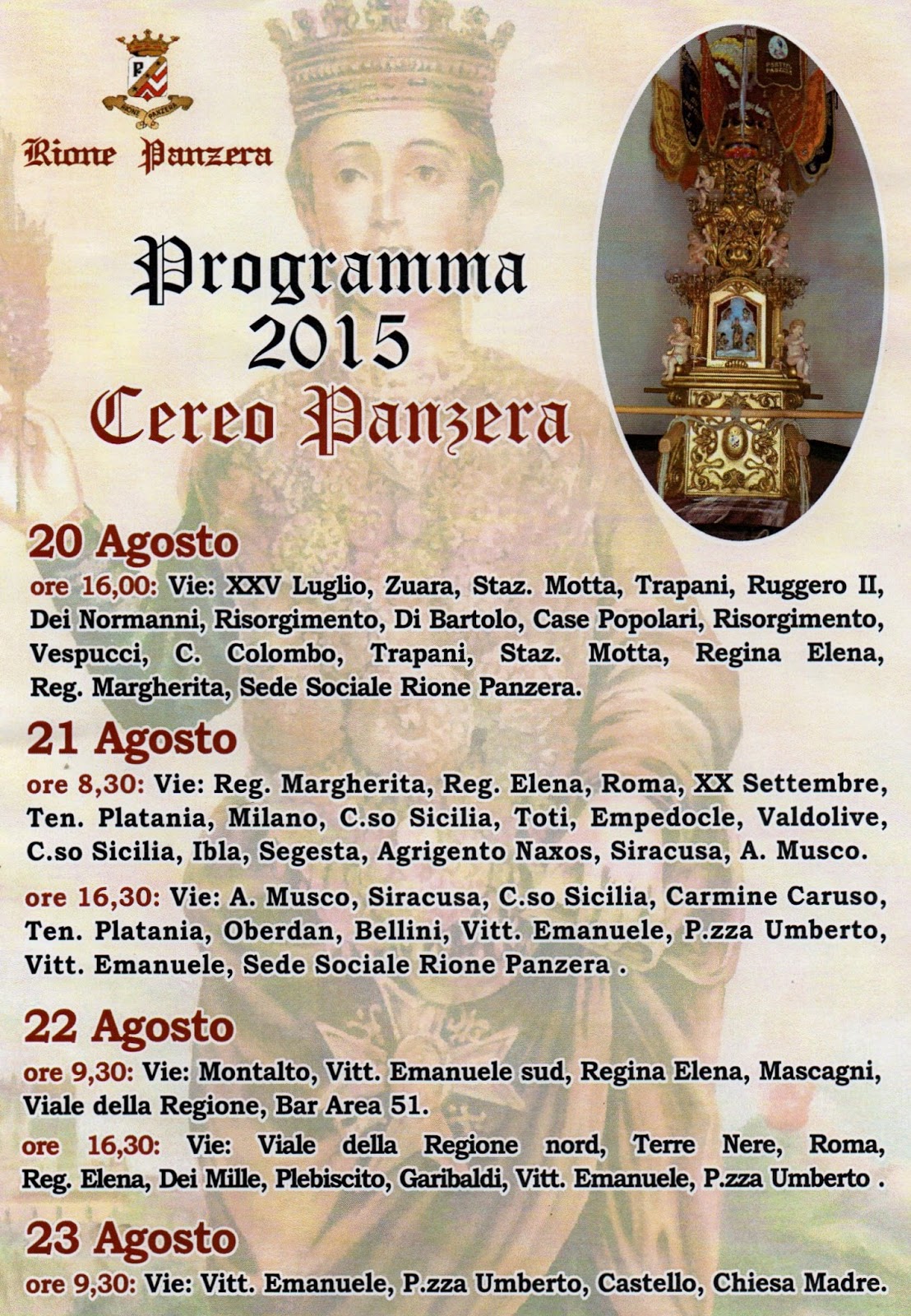 PROGRAMMA DEL CEREO PANZERA